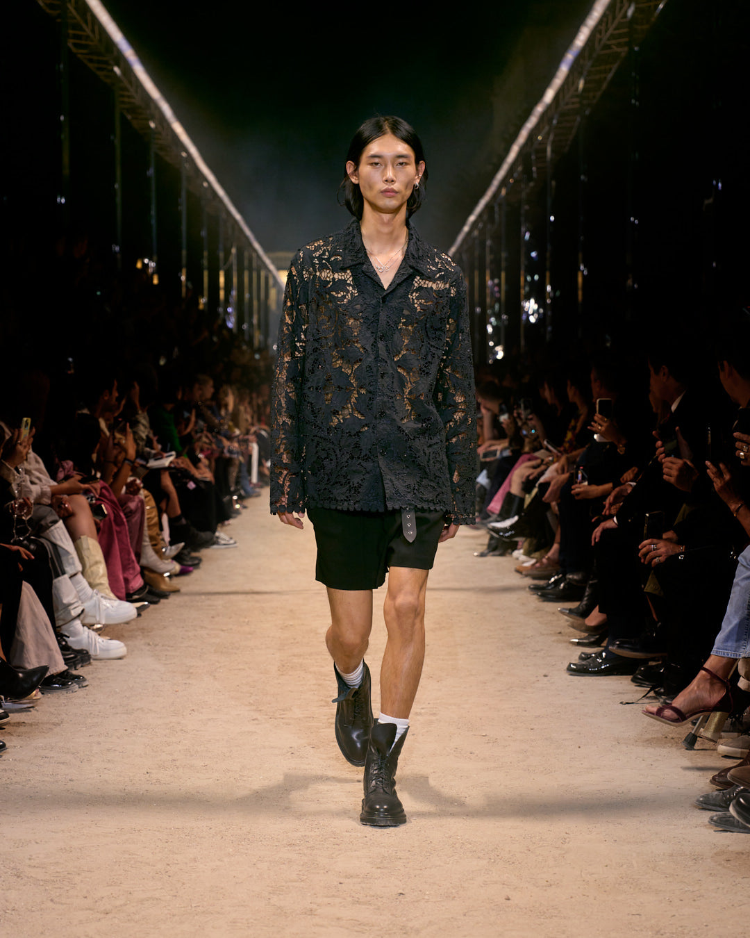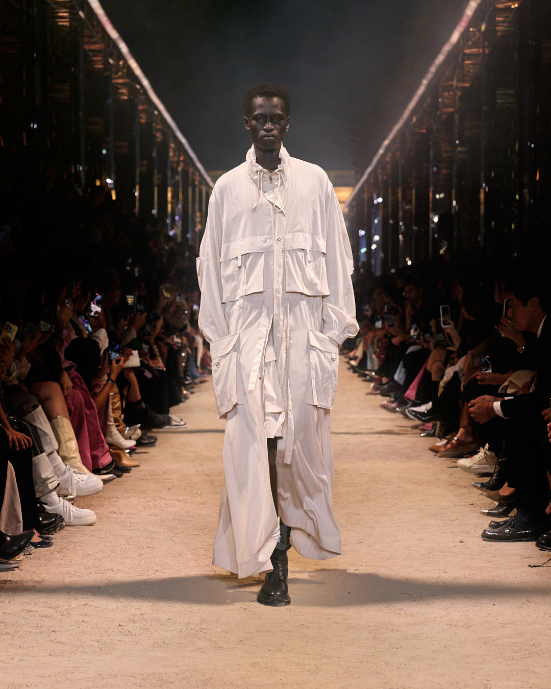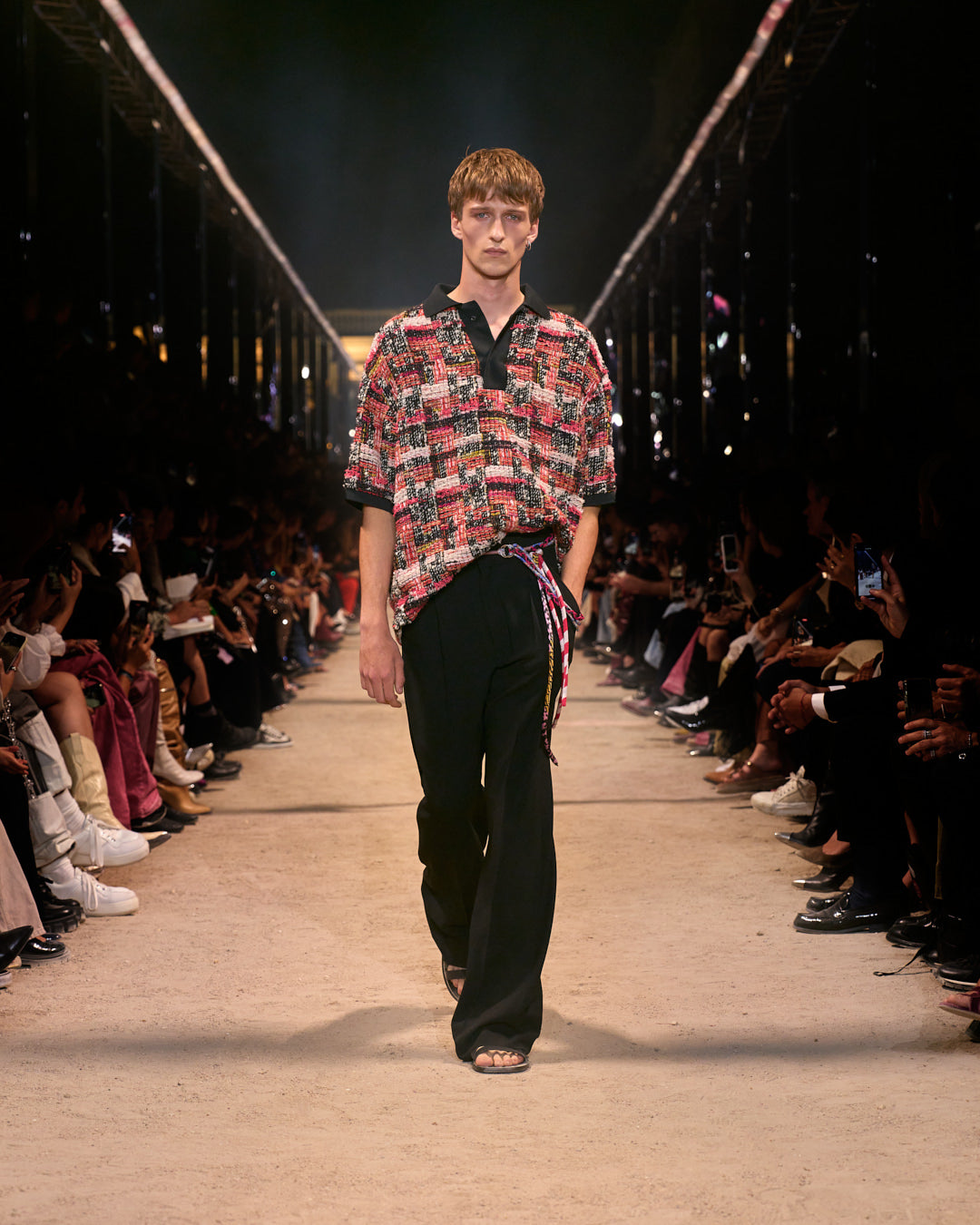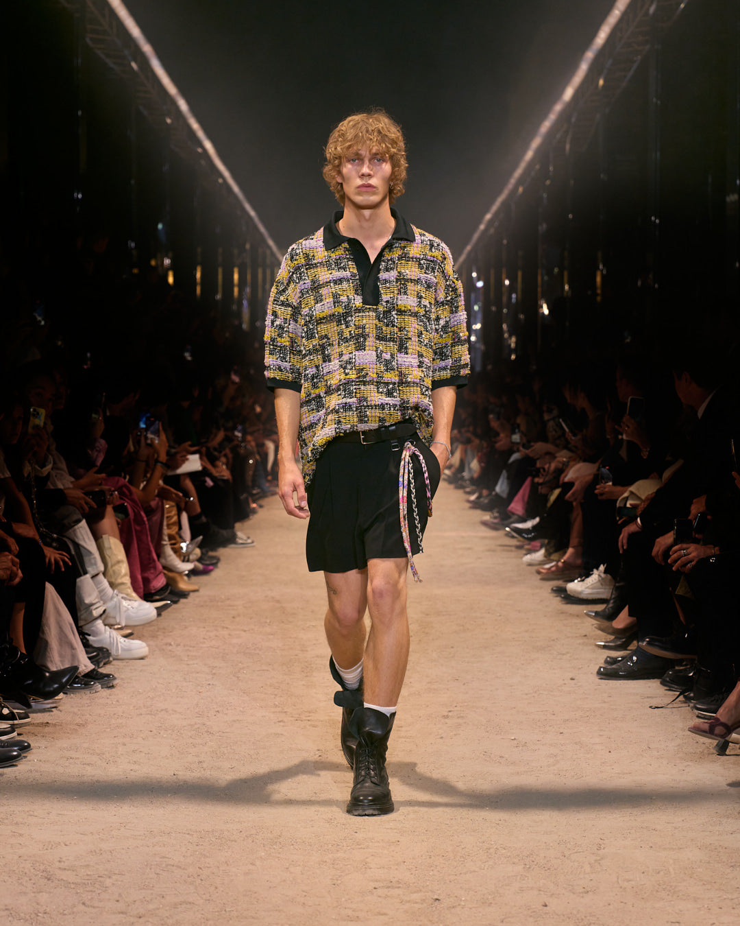 Die Kollektion weckt mit nonchalanter Poesie den Wunsch nach Leichtigkeit und Weiblichkeit, der bis zum Ende der Modenschau an einem wilden und prickelnden Abend verkörpert wird.