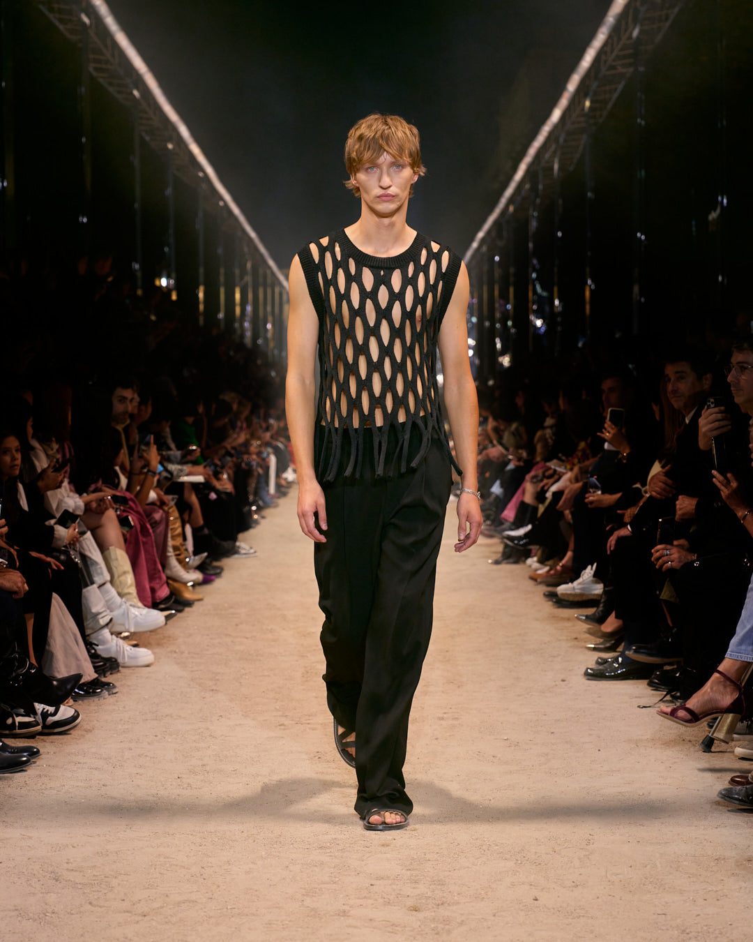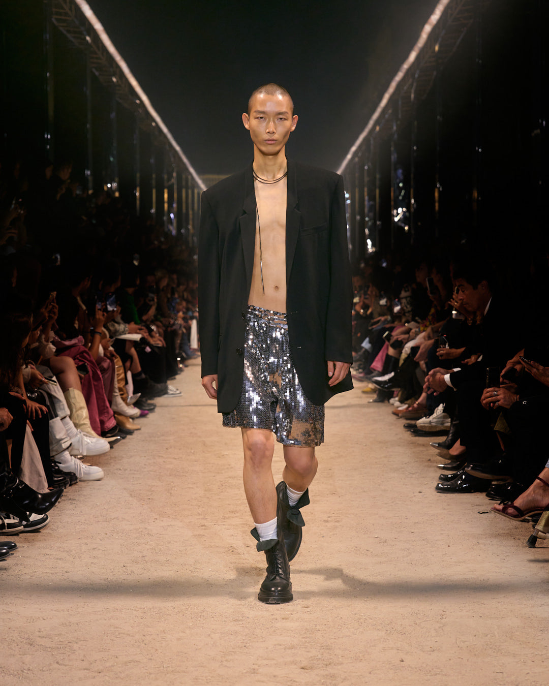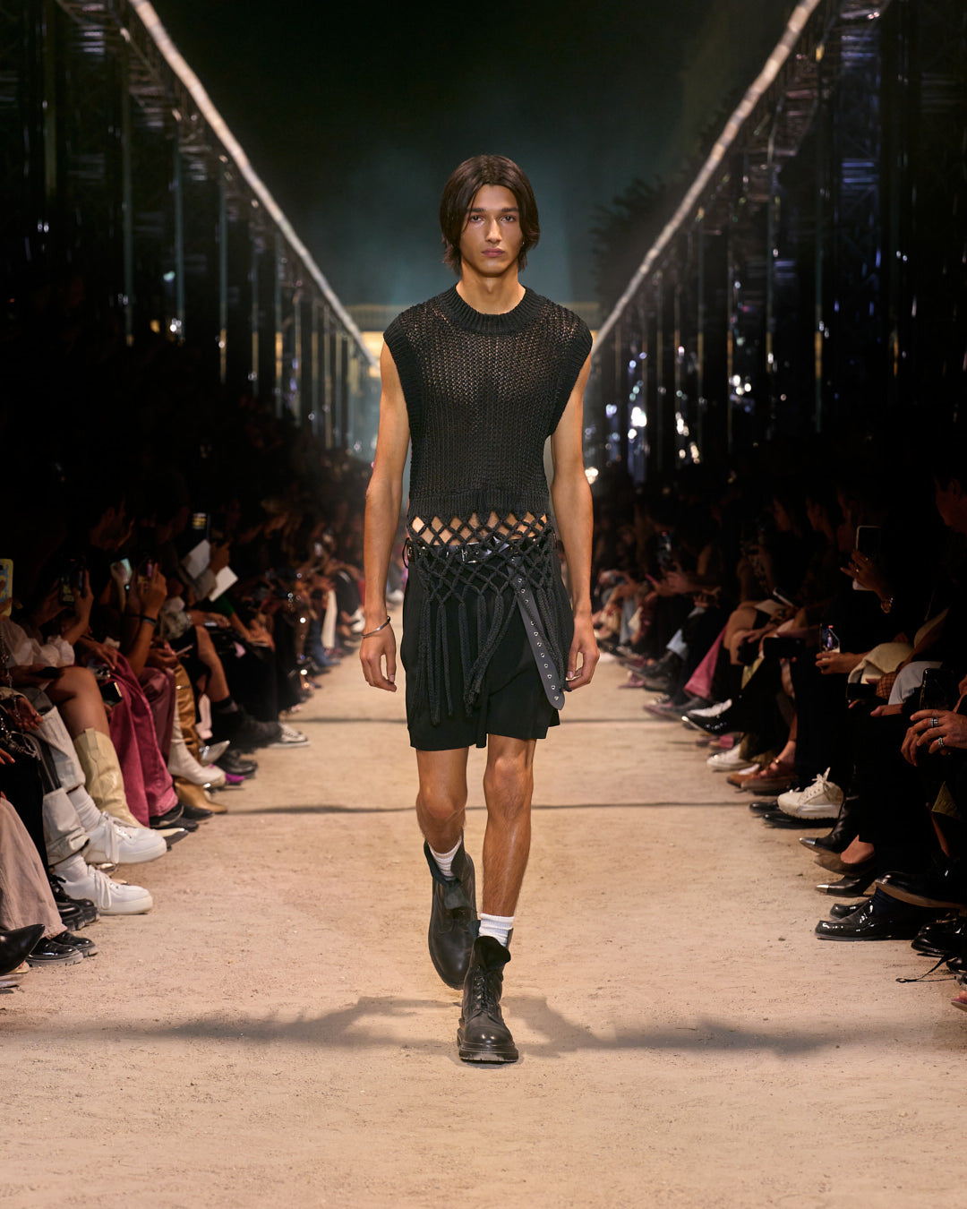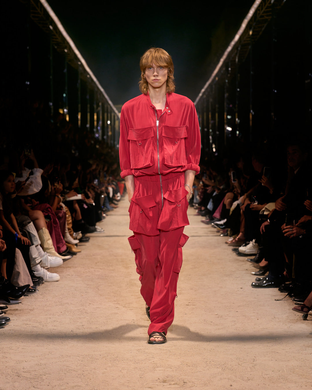 Die Kollektion weckt mit nonchalanter Poesie den Wunsch nach Leichtigkeit und Weiblichkeit, der bis zum Ende der Modenschau an einem wilden und prickelnden Abend verkörpert wird.