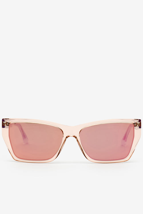 Rechteckige Sonnenbrille mit transparenter, rosafarbener Fassung