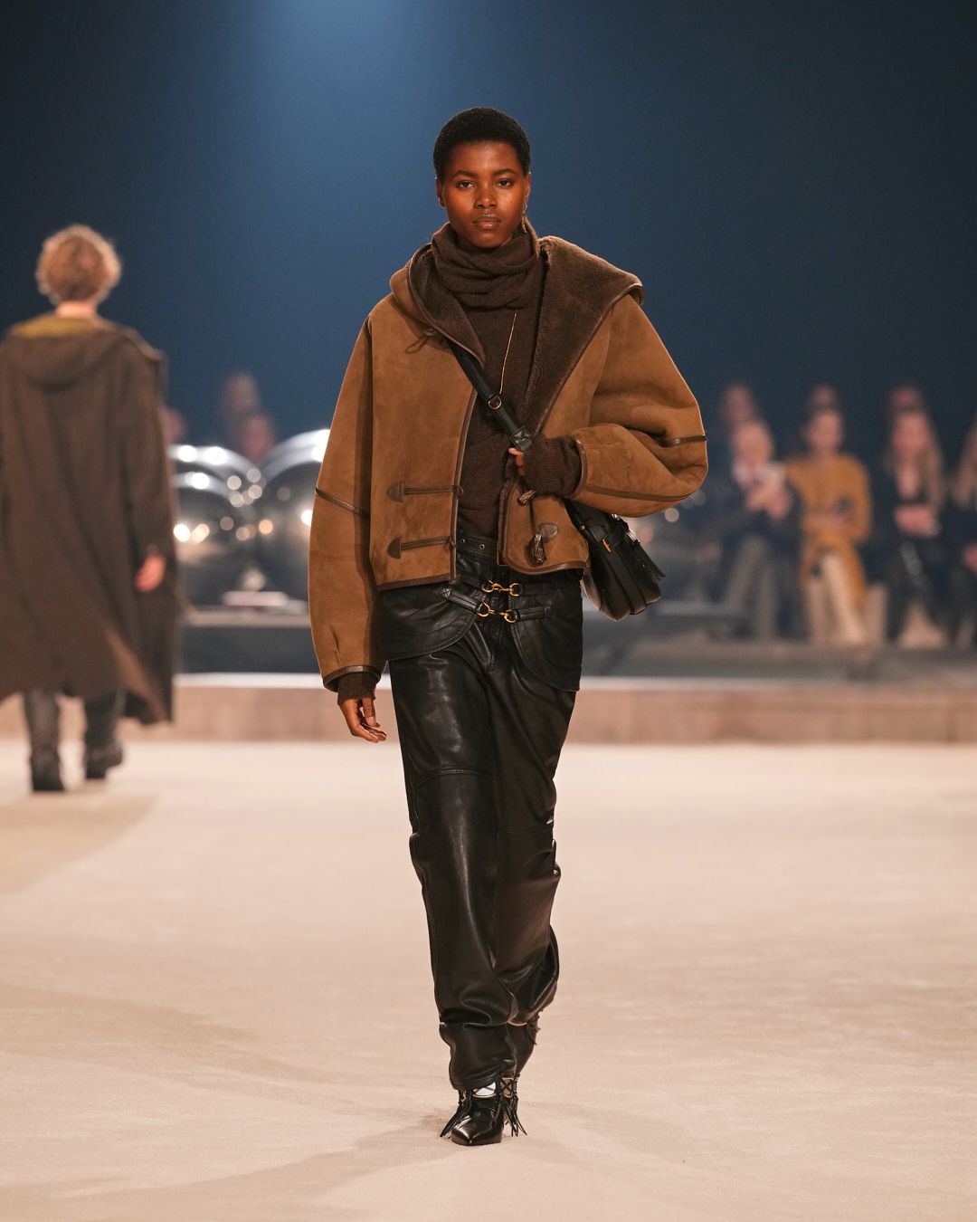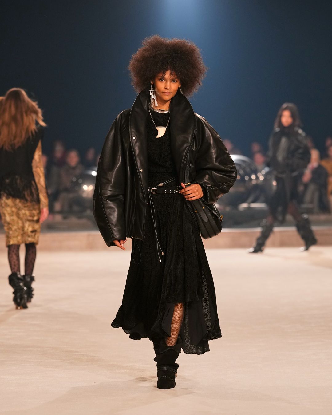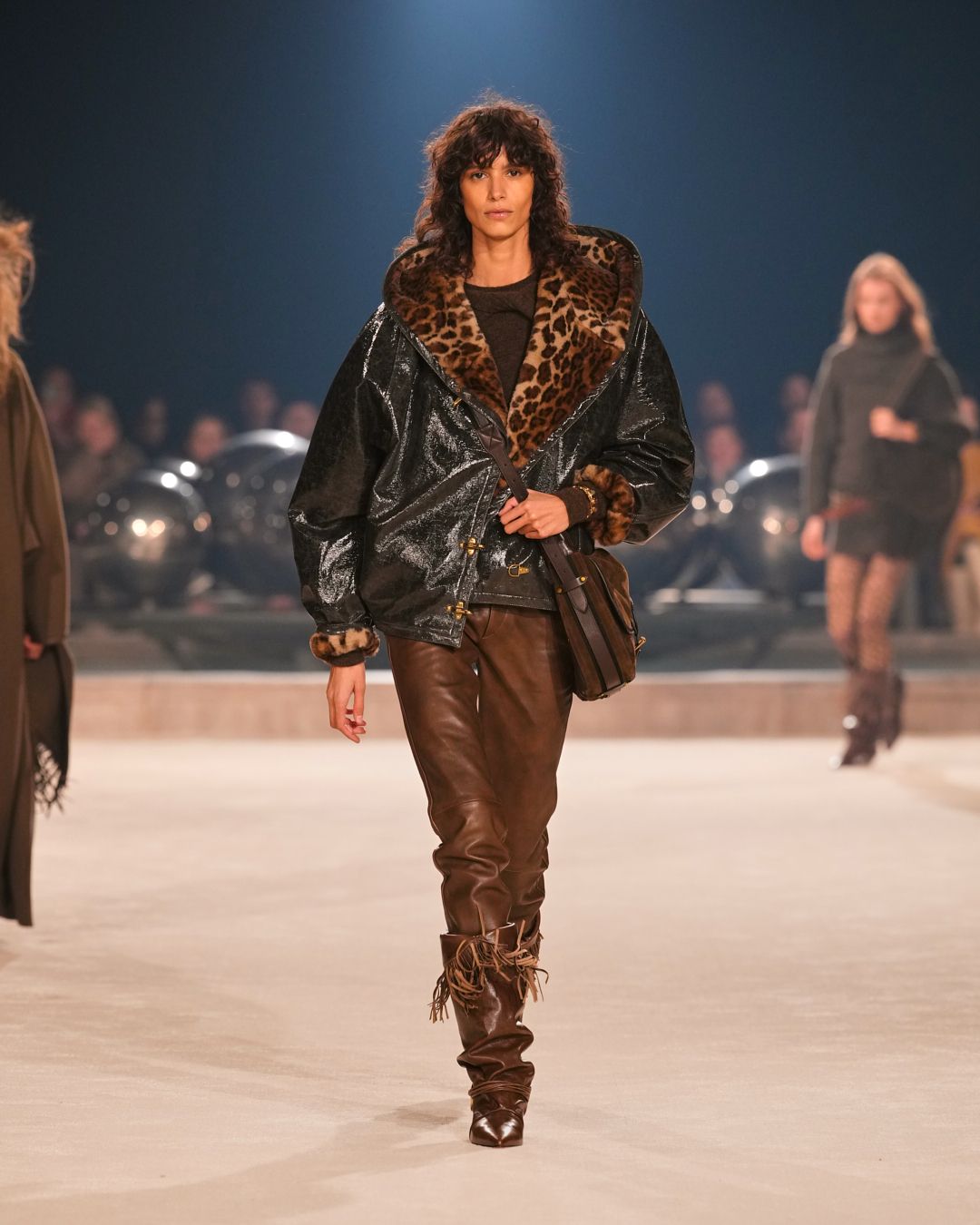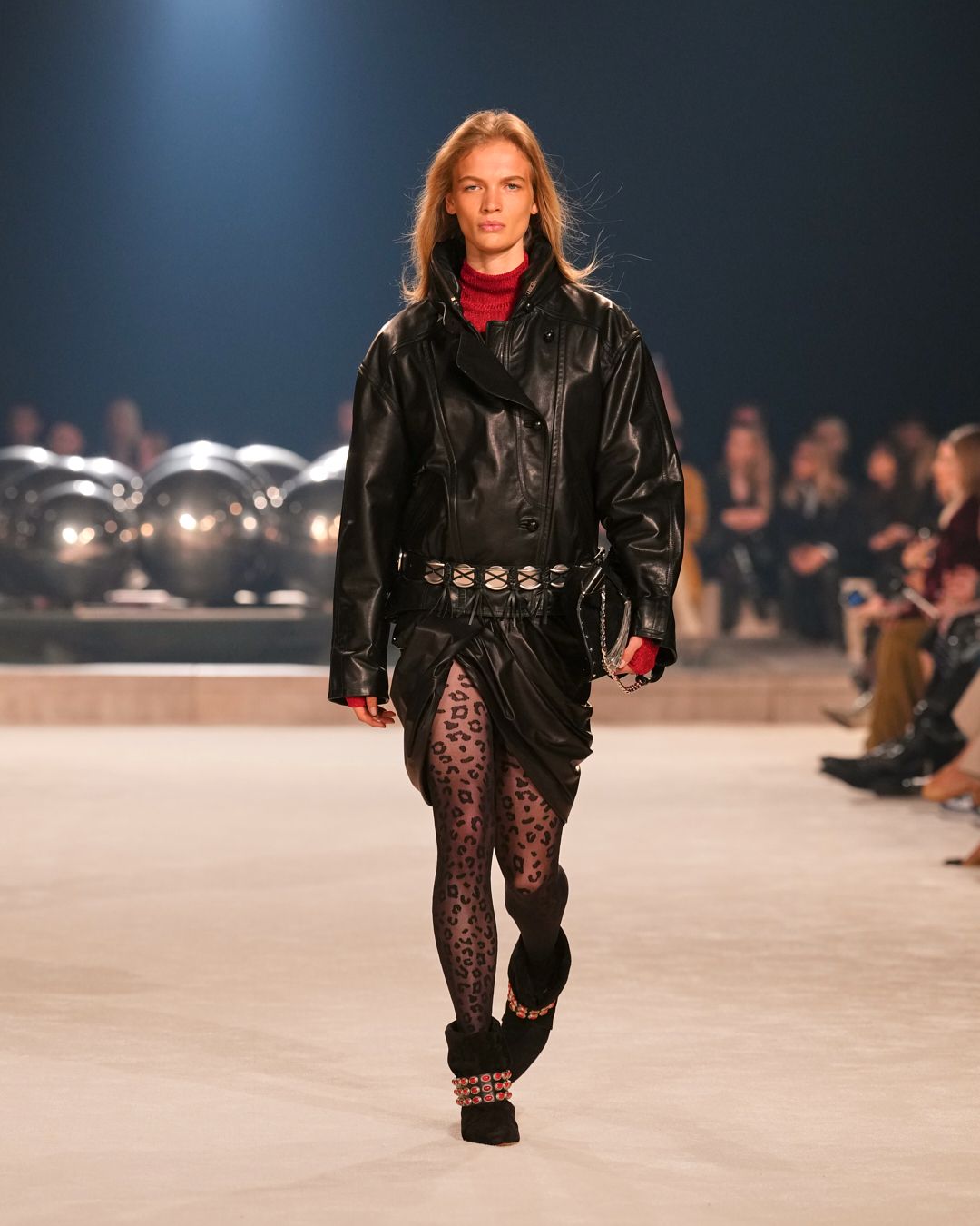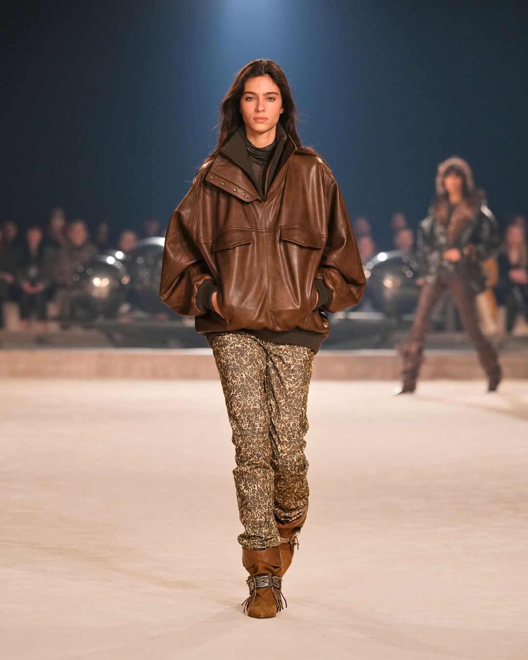 In the realm of strong women adorned in layers of knits, leathers, and shearlings, emerges an extreme rendition of Isabel’s silhouette—an exploration of Marant signature pieces tailored to the rough-meets-sexy mood of the season.