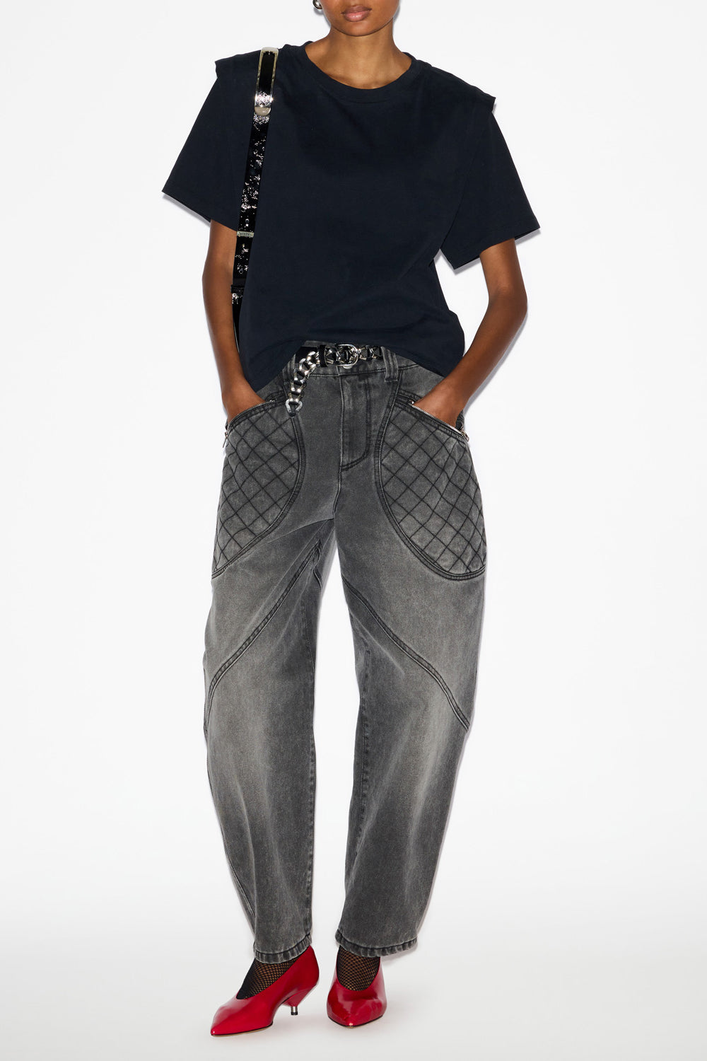 An arty touch. Discover Isabel Marant’s collection of women’s tee-shirts, where everyday comfort meets effortless chic. From minimalist cotton tees to playful prints, each design reflects the Parisian spirit of both Isabel Marant and Marant Étoile.