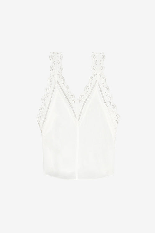 Top liso de crepé con tirantes y bordado inglés